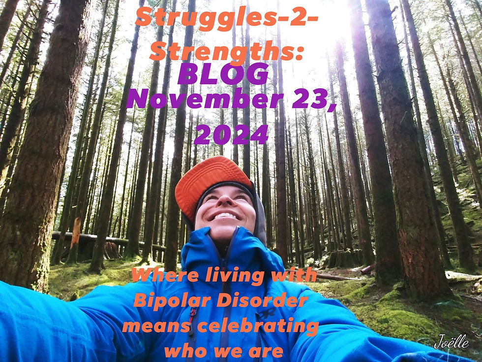 STRUGGLES-2-STRENGTHS BLOG aims to connect with those experiencing Bipolar Disorder (BD) like myself, as well as those who support them. Please share with others and don’t hesitate to comment